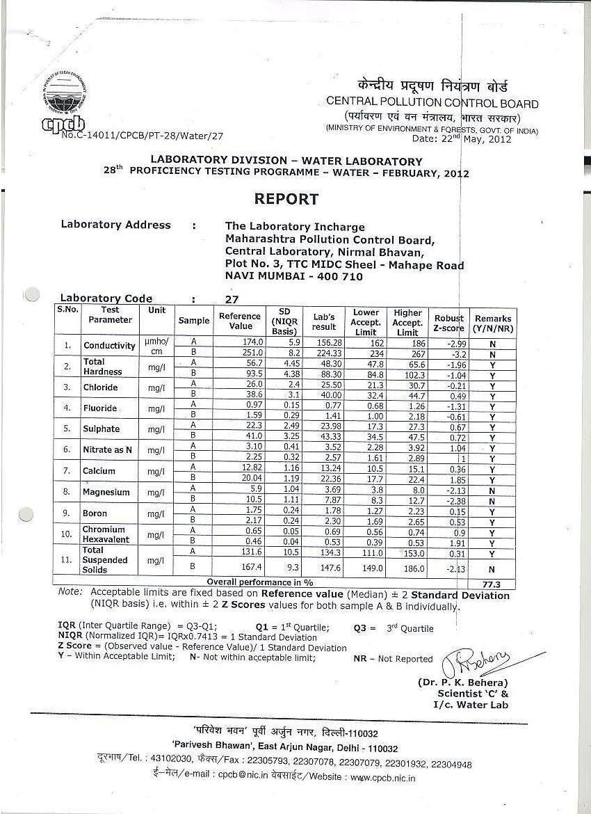 Main Content Linkमहाराष्ट्र प्रदूषण नियंत्रण मंडळ प्रयोगशाळांचे 27 वे आणि 28 वे निपुणता चाचणी कार्यक्रम अहवाल