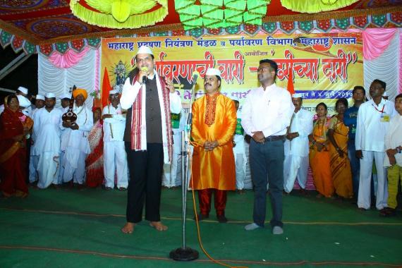 An environmental public awareness campaign namely 'Paryavaranachi Vaari Pandharichya Daari' was organized on the occasion of Aashadhi Ekadashi and the foot pilgrimage to Pandharpur. As environmental issues are equally detrimental to urban and rural areas, fundamental messages such as plastic waste removal, proper use of water, electricity and natural resources, use of limited electrical power for agriculture, use of organic fertilizers, proper waste management of wet waste and dry waste were spread among the 10 lakh devotees who had gathered for the Pandharpur pilgrimage. These messages were made public through folk art, popularly known as Kirtan, Bharud, and Povada. In this 15 day long pilgrimage, Sangeet Natak Academy award winner, Smt. Chandabai Tiwari, famous Shahir Shree Devanand Mali and Hari Bhakta Parayan Shri. Dnyaneshwar Maharaj Wabale created public awareness through Bharud, Povada and Kirtan respectively. This year's Pandharpur pilgrimage was inaugurated at Pune by Hon'ble Minister of State of Environment, Shri. Ramdas Kadam. Honorable dignitaries such as Member Secretary of MPCB, Dr. P. Anbalagan and Hon'ble Mayor of Pune were present at this event. Guidance for this pilgrimage was sought from Dr. Prakash Khandge, a well-known researcher of folk arts. The conclusion of this pilgrimage was organized on the eve of Aashadhi Ekadashi in the presence of Hon'ble Chief Minister, Shri. Devendra Fadnavis, Mrs. Amruta Fadnavis, Cabinet Minister (Solapur), Shri. Vijay Deshmukh, Minister of Water and Sanitation, Shri. Babanrao Lonikar, Senior Cabinet Minister, Shri. Mahadev Jankar, Member Secretary of MPCB, Dr. P. Anbalagan and other honorable dignitaries